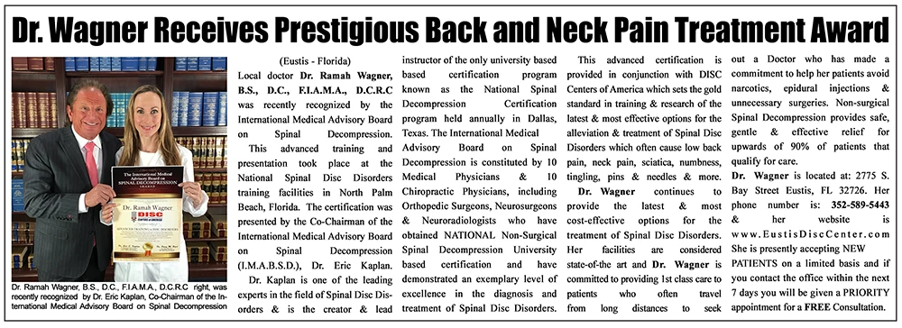 Welcome to Wagner Chiropractic. Our Eustis FL chiropractor helps health-conscious and active baby boomers struggling with severe back injuries and conditions to control and contain their pain through a series of natural, non-invasive, hand-tailored programs while helping them regain vitality.